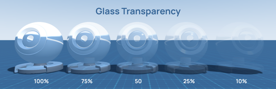 The intensity of the Opacity parameter (in Transparent mode) can be changed from 0 to 100%. If the parameter value is 0, the object will be completely transparent.
