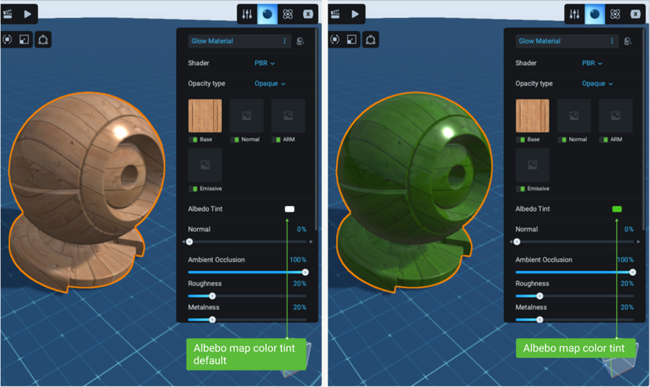 Application: the combination of texture and color can be used in animation. For example, we have some object and we need it to flash red without changing anything else. Create an animation, set the color change from white to red and loop the animation.