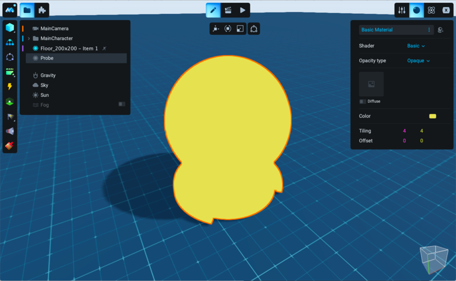 Each material has a Color property; and it behaves differently for each material. For example, for Basic materials, it behaves quite straightforwardly. We can choose any color and apply it to the object. And the object will simply get this color, there will be no reliefs, shadings or refraction of light on the object.