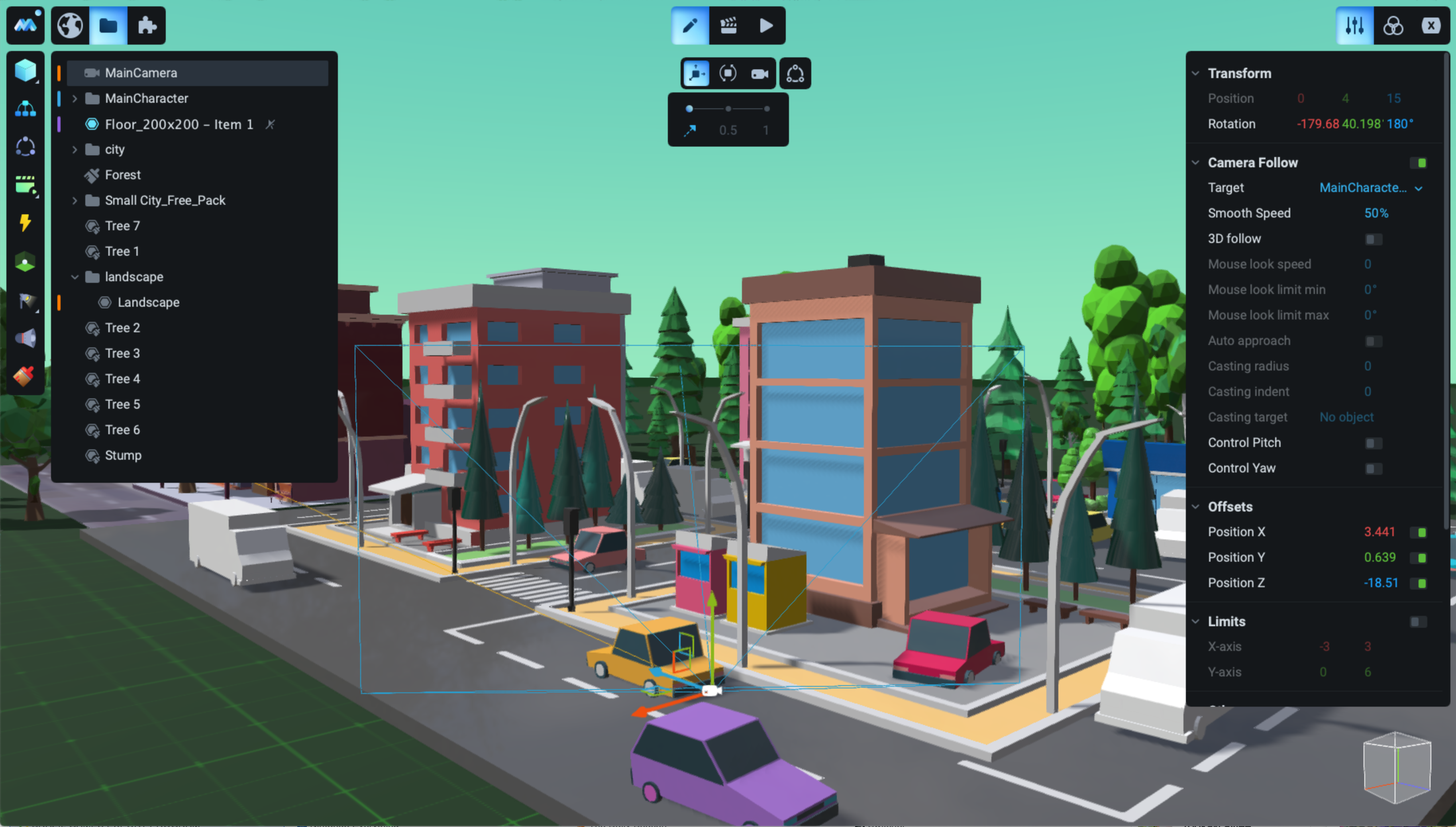 * Next, we need to make sure that Camera preview is enabled on the Gismo Panel. This will allow us to look at the Scene through the Main Camera. In the Main Camera mode, we will see how our game world will be seen by the game camera (in game mode).