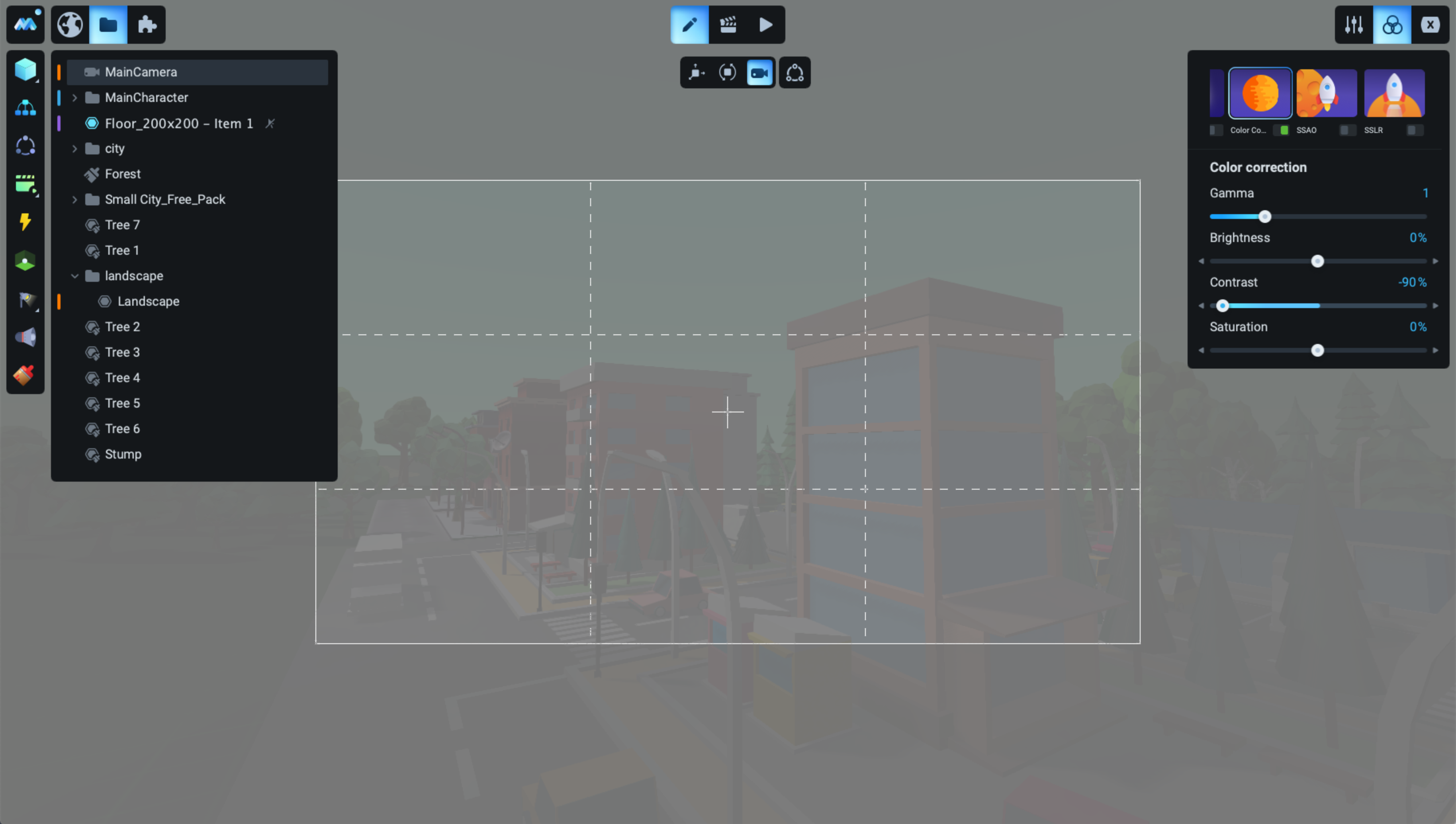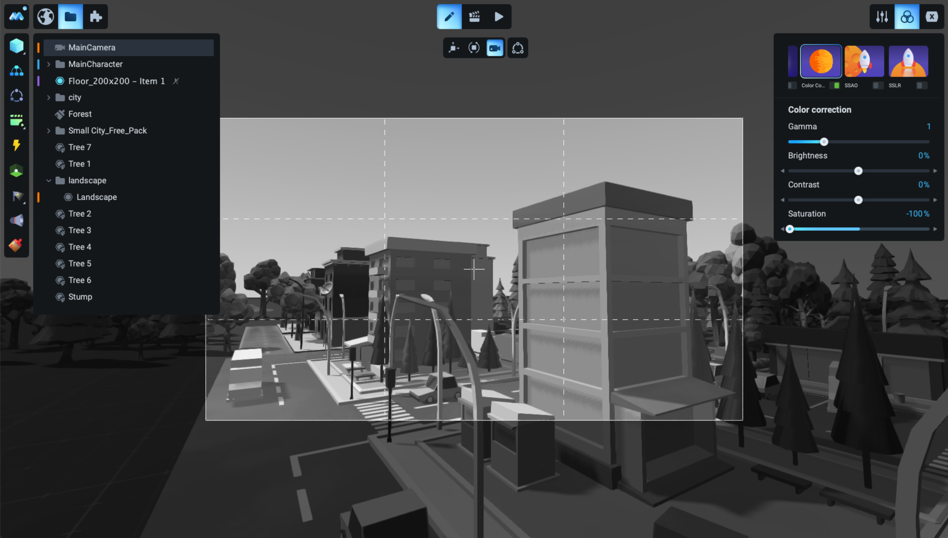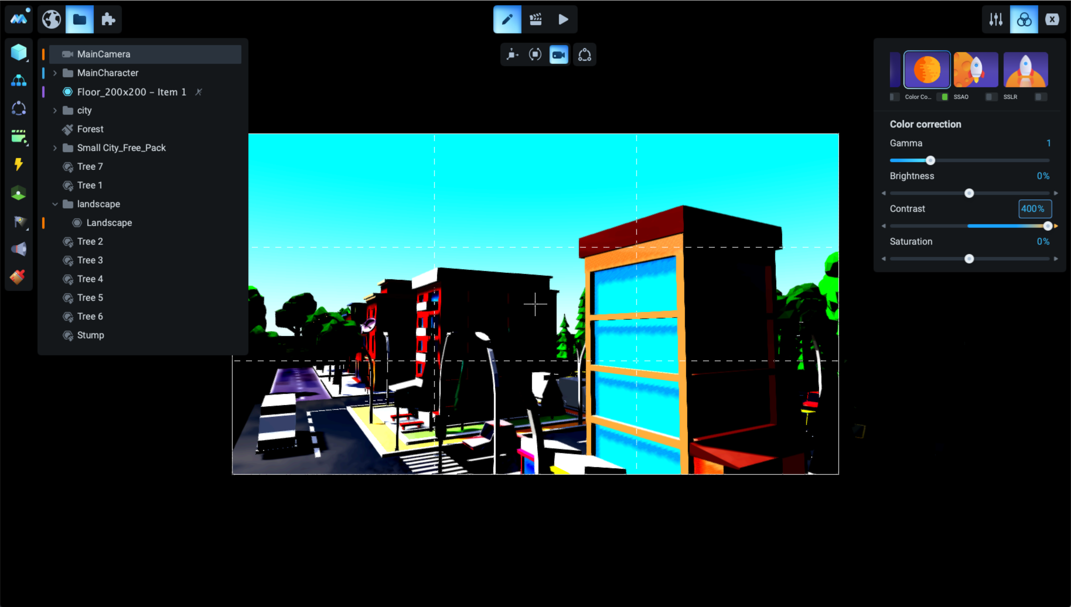 Color Correction is responsible for changing the colors of the scene image. It will help to eliminate any color imbalances or create new color effects.
