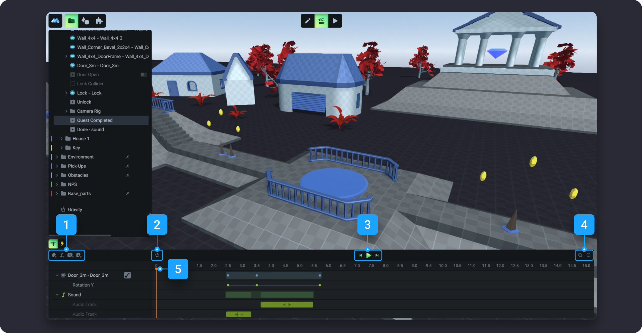 To add a local variable to the timeline, do the following: Click the corresponding icon on the top left of the timeline panel; give your local variable a name, for example "X"; select the type of value this local variable should have, either Number or Boolean; specify the value; click Create