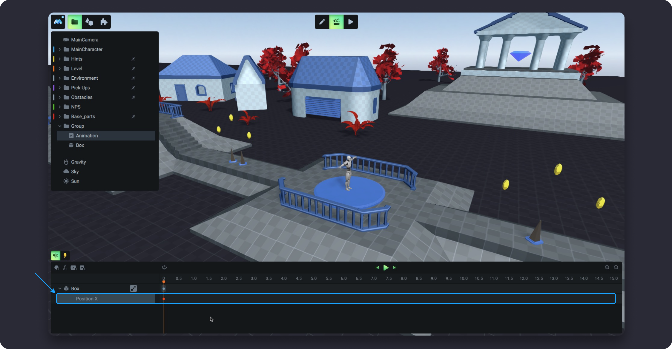 In this case, an added audio clip will be played as a surround sound that will be heard only in a certain place of the scene. The closer the Main Character is to the speaker, the louder the sound will be.